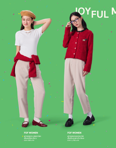 FOF WOMEN FOF WOMEN #FOWW2511BW07WH เสื้อแต่งโซ่คอ สีขาว ราคา 595 บาท #FOWW2509CW27RE เสื้อแจ็กเกตผ้าทวีต สีแดง ราคา 1,795 บาท