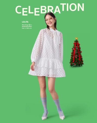 LOLITA Mini Dress สีขาว แต่งดีเทลโบว์ที่คอ ราคา 1,790 บาท
