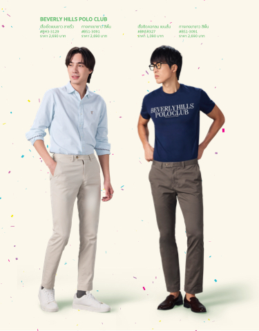 BEVERLY HILLS POLO CLUB เสื้อเชิ้ตแขนยาว ลายริ้ว #BH3-3129 ราคา 2,690 บาท กางเกงขายาว สีพื้น #BS1-3091 ราคา 2,690 บาท เสื้อยืดคอกลม แขนสั้น #BNSR327 ราคา 1,090 บาท กางเกงขายาว สีพื้น #BS1-3091 ราคา 2,690 บาท