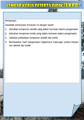 1. Sebutkan komponen abiotik yang kalian temukan dalam pengamatan