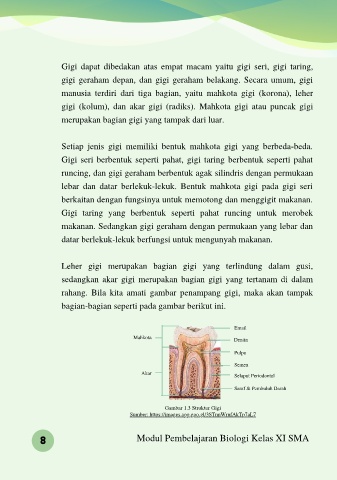 rahang. Bila kita amati gambar penampang gigi, maka akan tampak