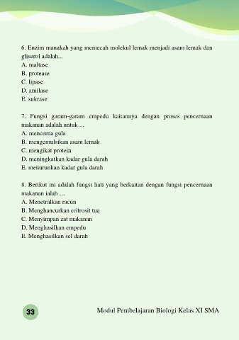 6. Enzim manakah yang memecah molekul lemak menjadi asam lemak dan