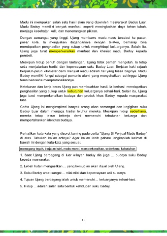 Perhatikan kata-kata yang disorot kuning pada cerita “Ujang Si Penjual Madu Baduy”