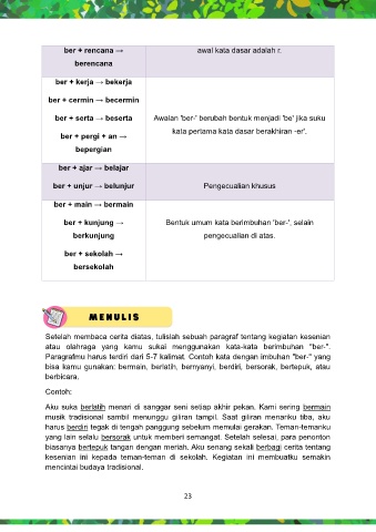Paragrafmu harus terdiri dari 5-7 kalimat. Contoh kata dengan imbuhan "ber-" yang