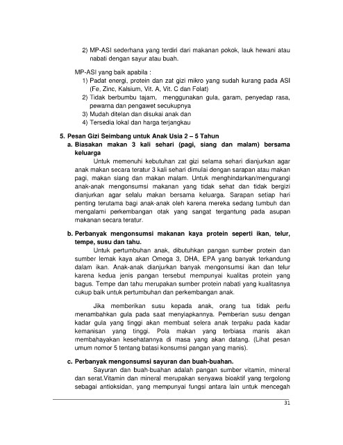 2) MP-ASI sederhana yang terdiri dari makanan pokok, lauk hewani atau