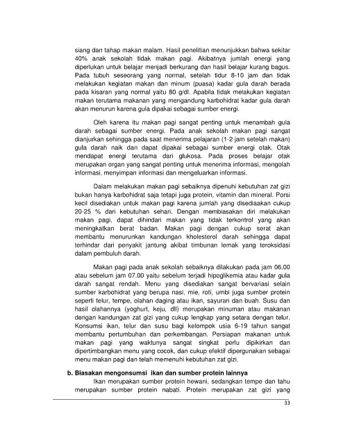 darah sebagai sumber energi. Pada anak sekolah makan pagi sangat