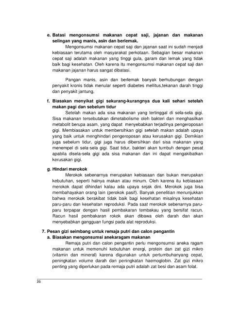 e. Batasi mengonsumsi makanan cepat saji, jajanan dan makanan