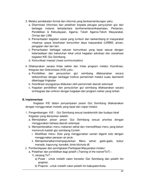 a. Pendidikan dan penyuluhan gizi seimbang dilaksanakan secara