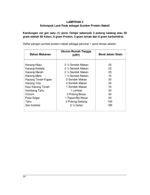 Daftar pangan sumber protein nabati sebagai penukar 1 porsi tempe adalah:
