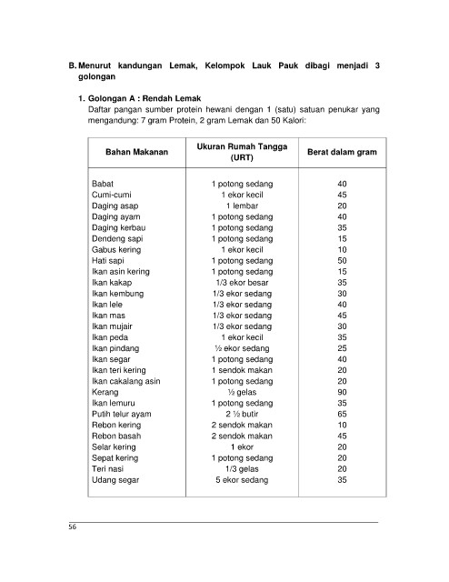 B. Menurut kandungan Lemak, Kelompok Lauk Pauk dibagi menjadi 3