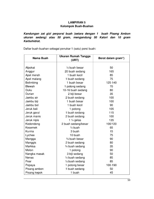 Daftar buah-buahan sebagai penukar 1 (satu) porsi buah: