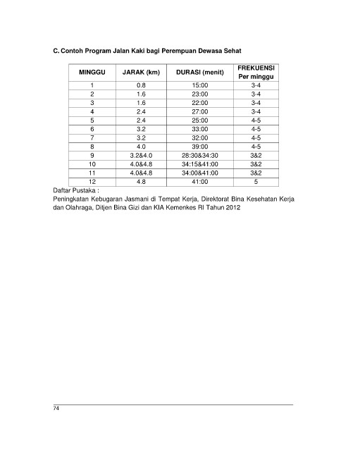 C. Contoh Program Jalan Kaki bagi Perempuan Dewasa Sehat