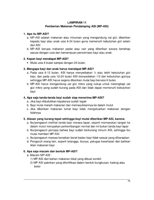 a. MP-ASI adalah makanan atau minuman yang mengandung zat gizi, diberikan