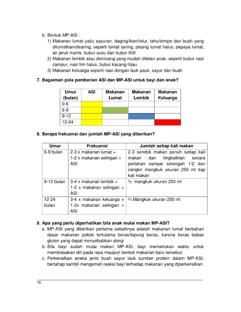 7. Bagaiman pola pemberian ASI dan MP-ASI untuk bayi dan anak?
