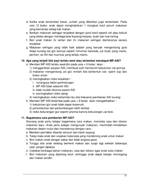 10. Apa yang terjadi bila bayi terlalu awal atau terlambat mendapat MP-ASI?