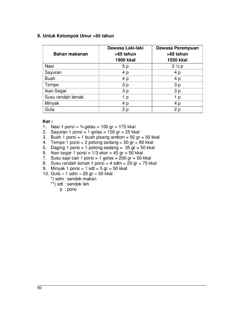 1. Nasi 1 porsi = ¾ gelas = 100 gr = 175 kkal