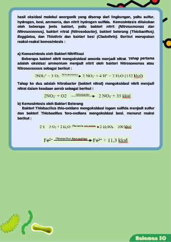 reaksi-reaksi kemosintesis :