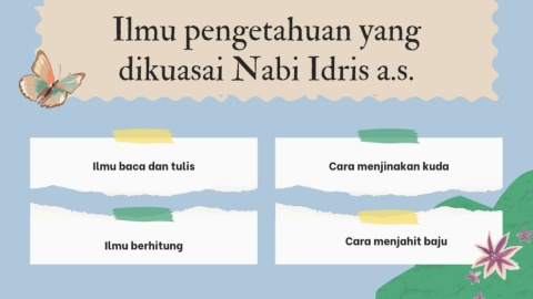 Ilmu pengetahuan yang dikuasai Nabi Idris a.s. Ilmu baca dan tulis Cara menjinakan kuda Ilmu berhitung Cara menjahit baju