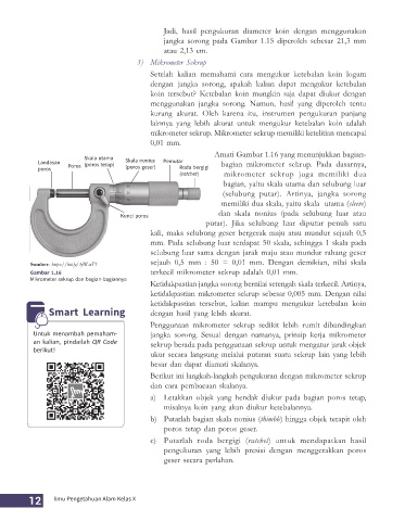 Gambar 1.16 terkecil mikrometer sekrup adalah 0,01 mm.