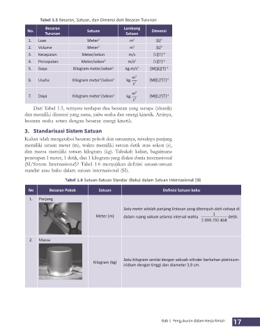 (SI/Sistem Internasional)? Tabel 1.6 menyajikan definisi satuan-satuan