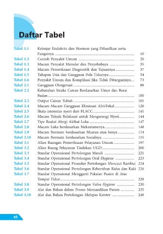 Tabel 3.10 Alat dan Bahan Pertolongan Melepas Kateter ......................... 248