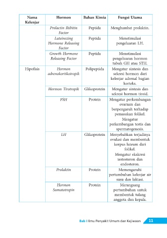 Nama Hormon Bahan Kimia Fungsi Utama