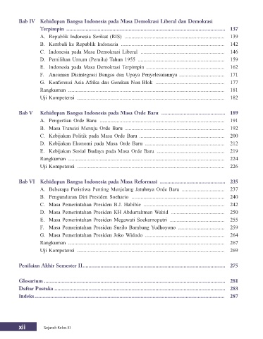Bab VI Kehidupan Bangsa Indonesia pada Masa Reformasi ............................................ 235