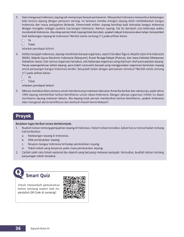 baik kedatangan Jepang ke Indonesia? Berilah tanda centang () pada pilihan kalian.