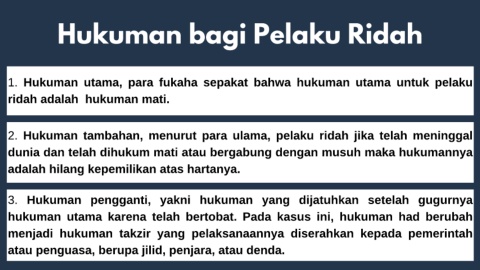 2. Hukuman tambahan, menurut para ulama, pelaku ridah jika telah meninggal