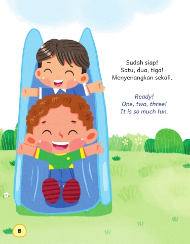 Sudah siap! Satu, dua, tiga! Menyenangkan sekali. Ready! One, two, three! It is so much fun. 8