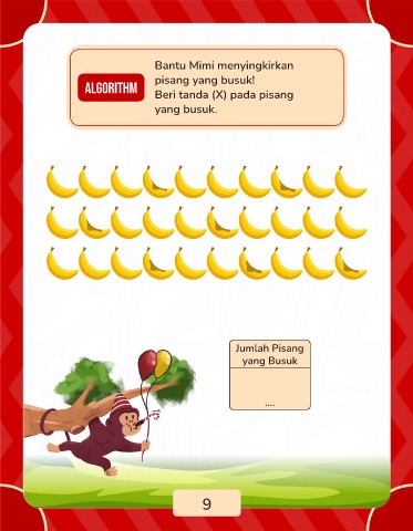Bantu Mimi menyingkirkan pisang yang busuk! ALGORITHM Beri tanda (X) pada pisang yang busuk. Jumlah Pisang yang Busuk .... 9