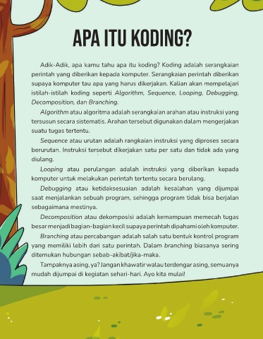 istilah-istilah koding seperti Algorithm, Sequence, Looping, Debugging,