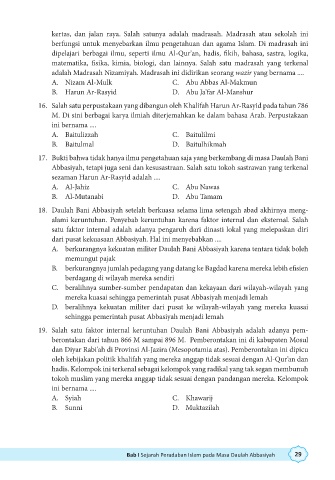 16. Salah satu perpustakaan yang dibangun oleh Khalifah Harun Ar-Rasyid pada tahun 786