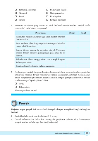 2. Manakah pernyataan yang benar atau salah berdasarkan teks tersebut? Berilah tanda