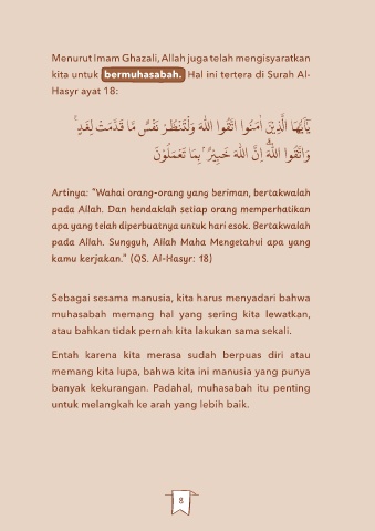 kita untuk bermuhasabah. Hal ini tertera di Surah Al-