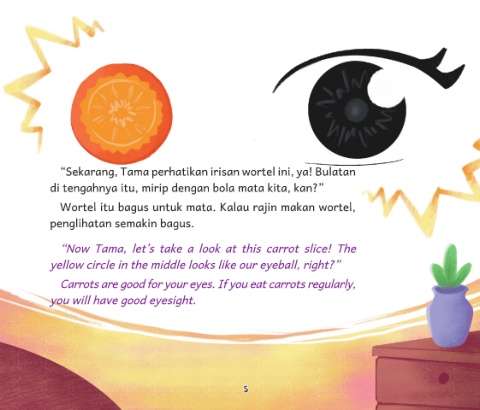“Sekarang, Tama perhatikan irisan wortel ini, ya! Bulatan