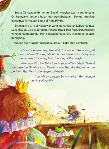 Lalu, disusul Jeje si Jerapah. Hingga tiba giliran Ron. Burung robin