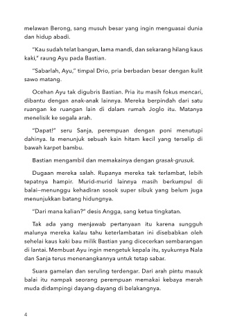 “Sabarlah, Ayu,” timpal Drio, pria berbadan besar dengan kulit