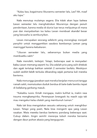 Nala menoleh, terkejut. Tetapi, beberapa saat ia menyadari