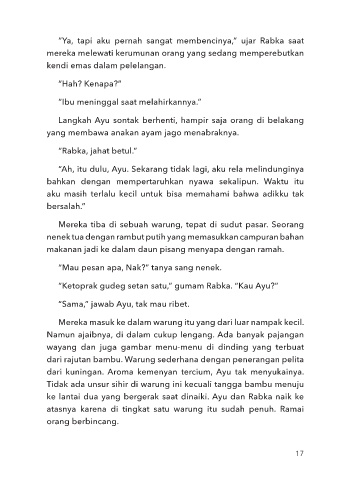 “Ketoprak gudeg setan satu,” gumam Rabka. “Kau Ayu?”