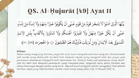 Wahai orang-orang yang beriman, janganlah suatu kaum mengolok-olok kaum yang lain (karena) boleh