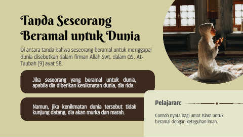 Di antara tanda bahwa seseorang beramal untuk menggapai