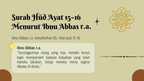 Ibnu Abbas r.a. menafsirkan QS. Hūd ayat 15–16.