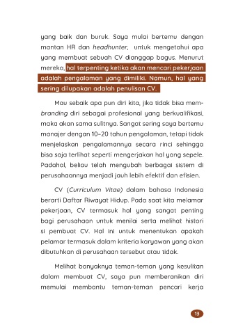 adalah pengalaman yang dimiliki. Namun, hal yang