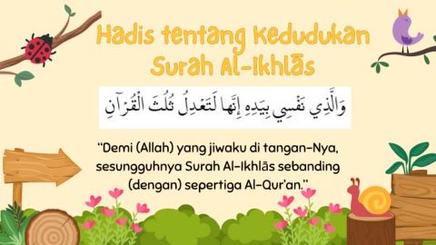 Hadis tentang Kedudukan H a d i s t e n t a n g K e d u d u k a n - I A l k ā s h l u S Surah Al-Ikhlās h a r “Demi (Allah) yang jiwaku di tangan-Nya, sesungguhnya Surah Al-Ikhlās sebanding (dengan) sepertiga Al-Qur’an.”