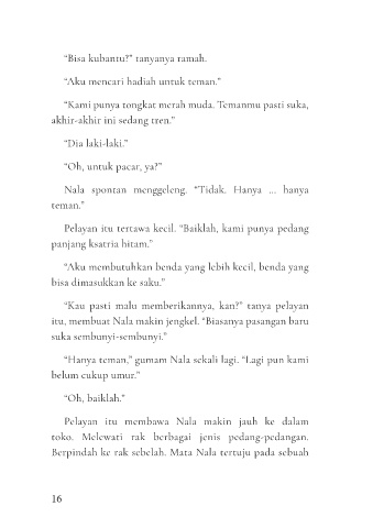 Berpindah ke rak sebelah. Mata Nala tertuju pada sebuah
