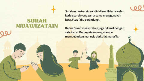 Surah muawizatain sendiri diambil dari awalan kedua surah yang sama-sama menggunakan SURAH kata A'uzu (aku berlindung). MUAWIZATAIN Kedua Surah muawizatain juga dikenal dengan sebutan al Muqasyataan yang mampu membebaskan manusia dari sifat munafik.