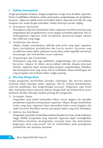 supervisi, pembinaan, dan pengembangan karyawan. Pengarahan yang efektif