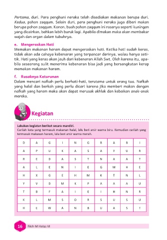 Carilah kata yang termasuk makanan halal, lalu beri arsir warna biru. Kemudian carilah yang
