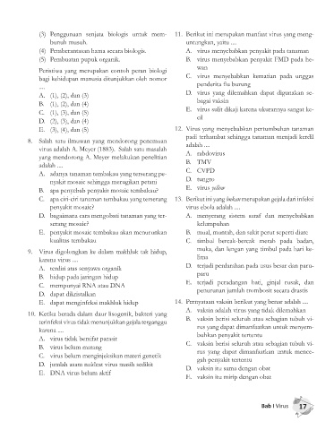 E. (3), (4), dan (5) 12. Virus yang menyebabkan pertumbuhan tanaman